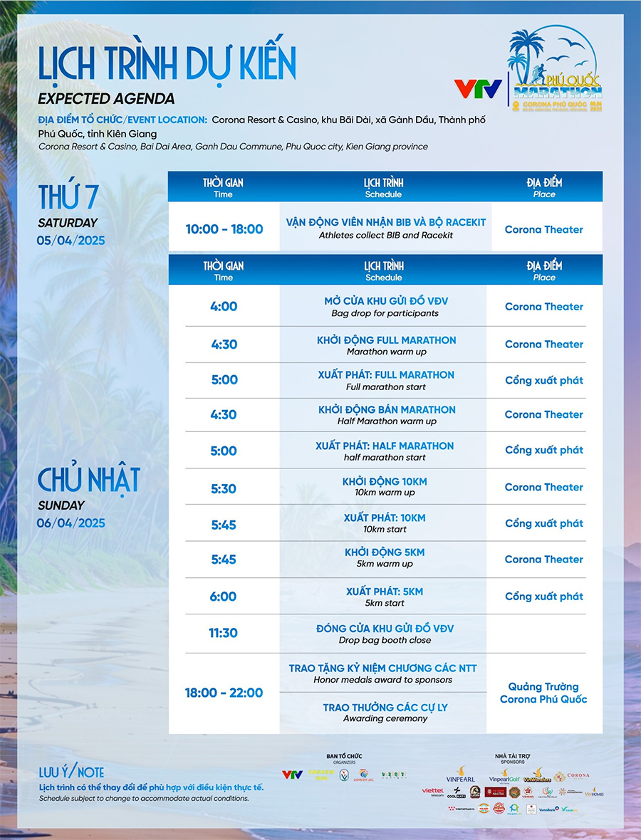 LỊCH TRÌNH NGÀY ĐUA VTV PHÚ QUỐC MARATHON 2025
